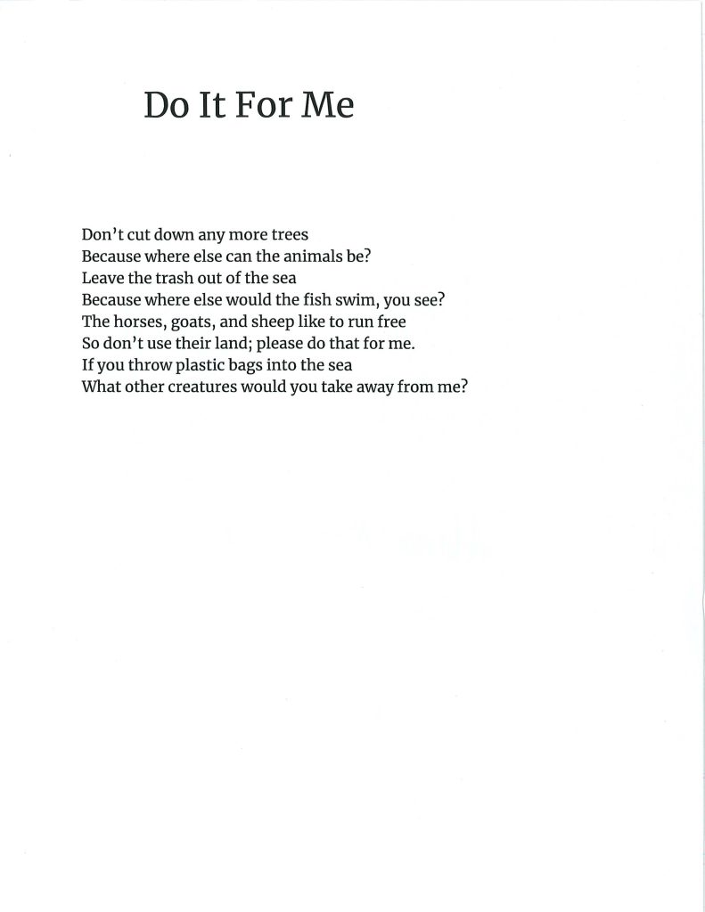 - Honorable Mention – Alana Martiniello, “Do It For Me”